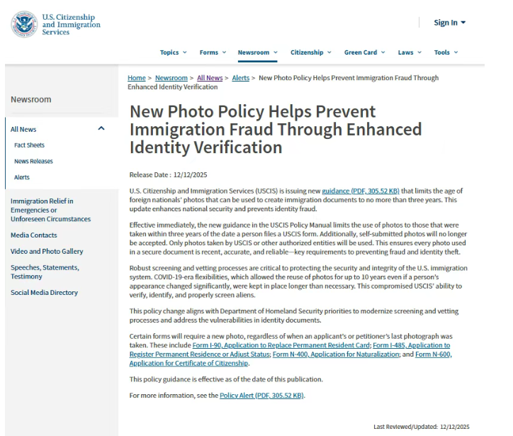 惊天巨变!美国移民局正式宣告:申请人自供照片时代彻底落幕! ...