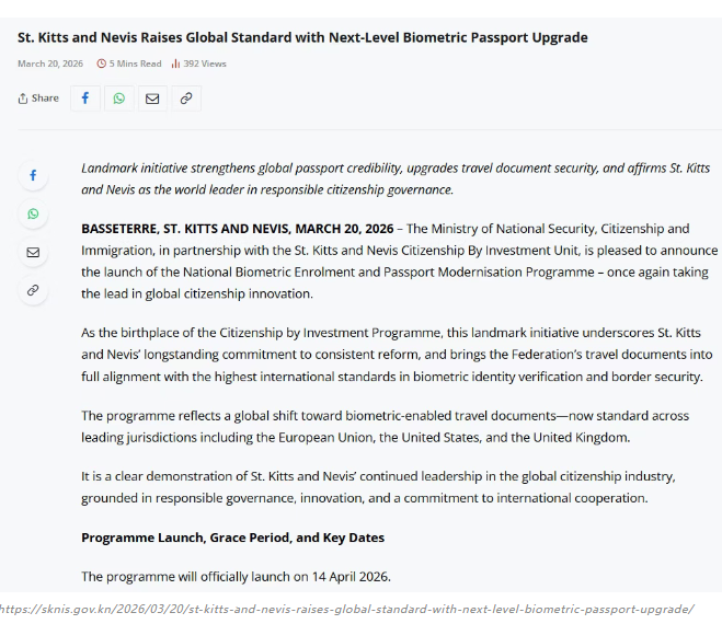 全球护照收紧!圣基茨4月14日起强制录指纹,不配合将无法出行