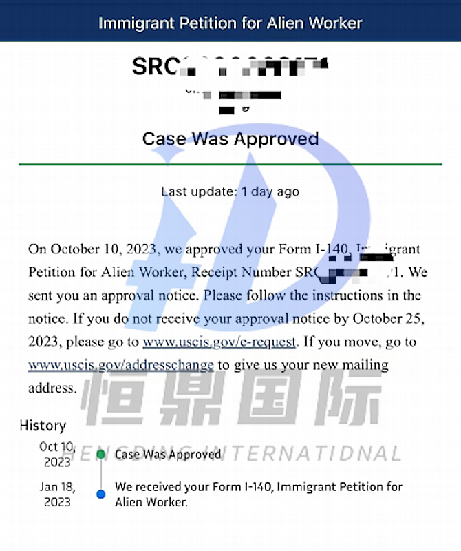 3、I-140获批时间:2023年10⽉普通递交⽆补料获批